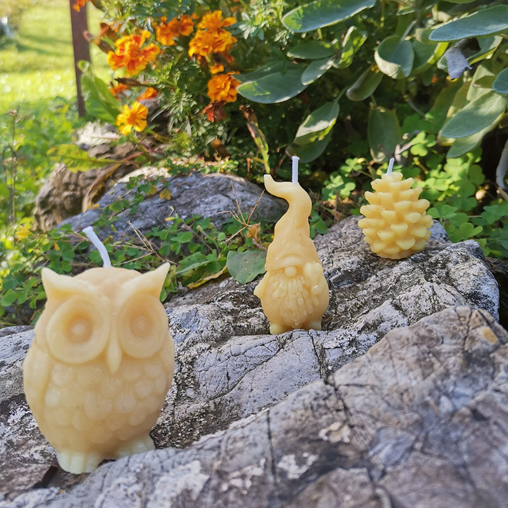 Con la cera pura che si recupera dalla smielatura produciamo piccole candele naturali perfette per dolcissime idee regalo da abbinare insieme al nostro Miele Millefiori!